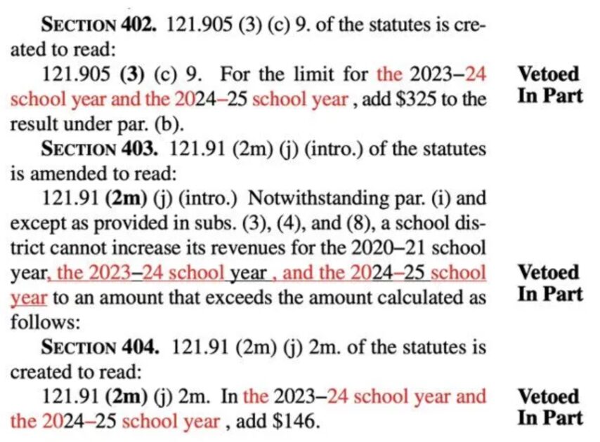 - Using a partial veto, Governor Evers extended revenue limits for 400 years by $325 per pupil, per year.
