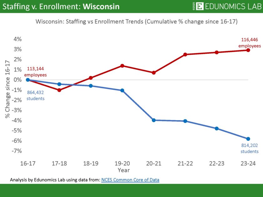 - Despite falling enrollment and increased staffing, Governor Evers’ partial veto allows for increased taxes of $325 per year per student without local approval